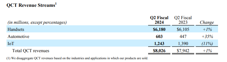 具体而言,当季QCT业务的营收同比增长1%至80.3亿美元,略高于市场预期的80亿美元。